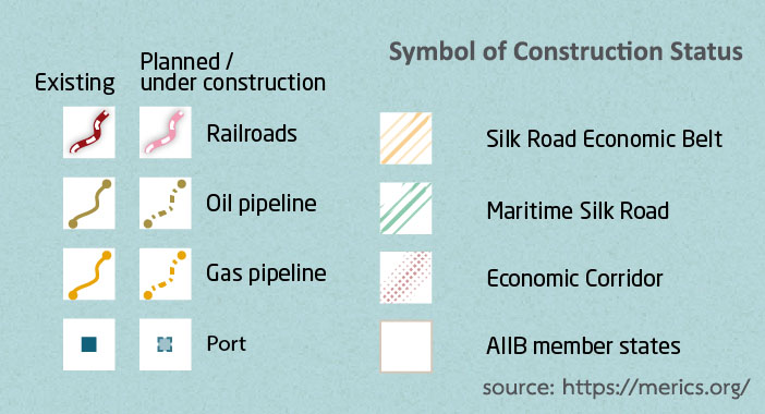丝绸之路经济带是一条陆路运输路线。连接中国和欧洲 就像古老的丝绸之路 这条陆路运输路线 通过铁路网络连接 中国高速 至中亚、中东深处,途经哈萨克斯坦、伊朗等主要市场国家,横穿土耳其。通过商业城市法兰克福、威尼斯、阿姆斯特丹等欧洲主要城市进入欧洲。世界主要工业城市和港口
